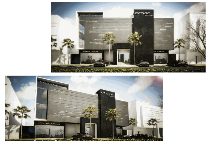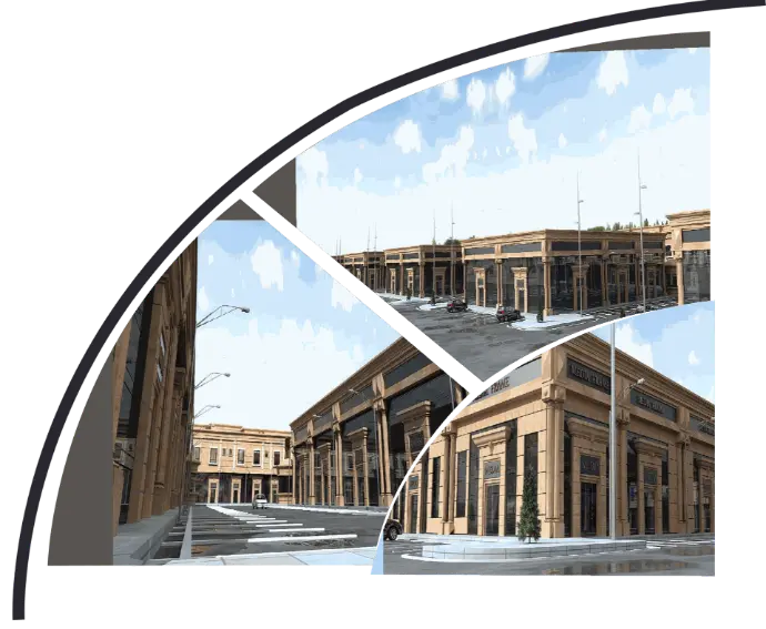 - 8 كتل معمارية: 7 تجارية و1 سكنية